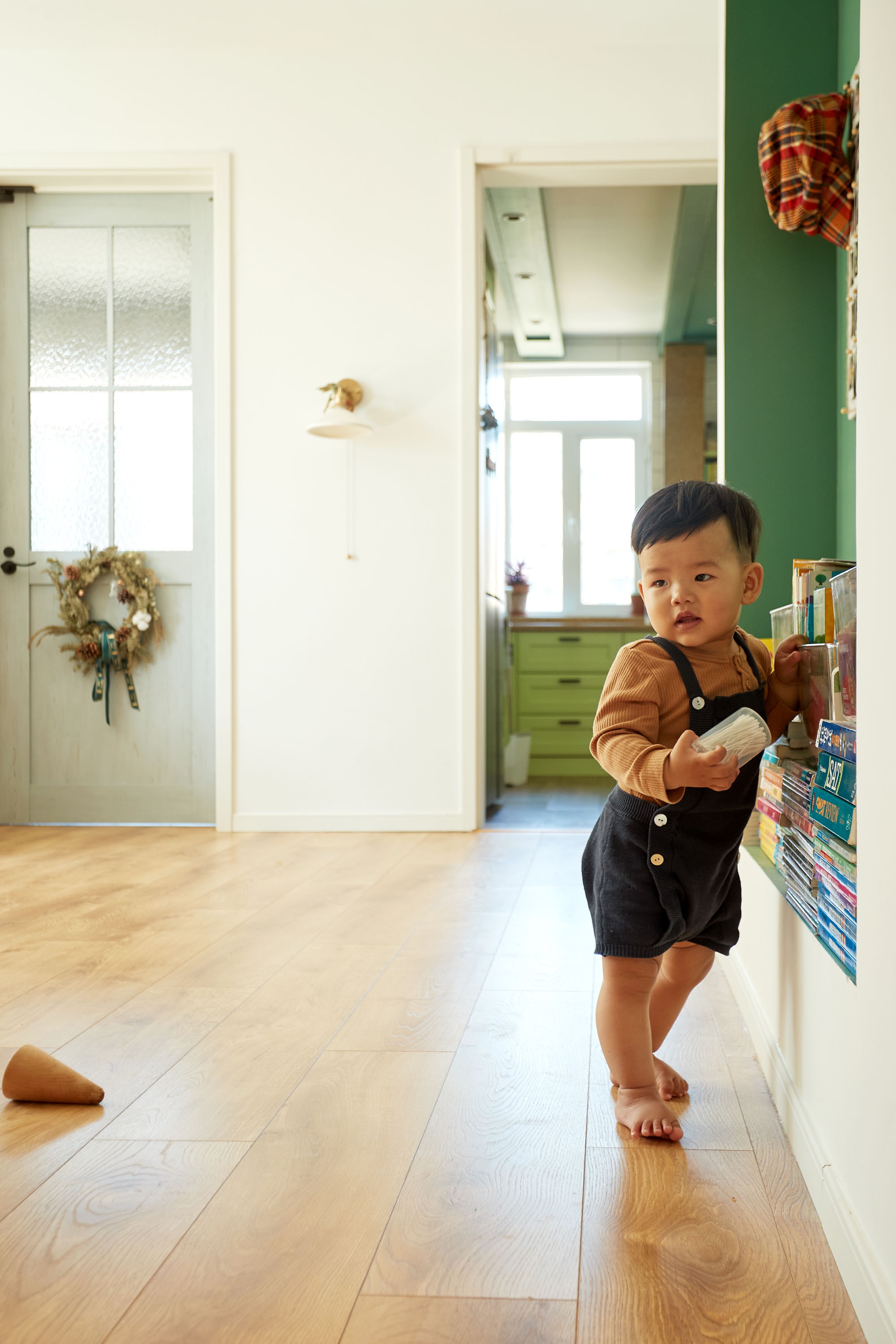 改造出的壁龕,既可收納家中書籍,又方便孩子扶著墻,邊玩、邊讀、邊看、邊學(xué)習(xí)走路,短短數(shù)米內(nèi),筑成一條充滿生命力的成長之路。獨屬于這個家的浪漫、藝術(shù)、自由的敘事,加劇了家人之間情感的層層遞進(jìn)。