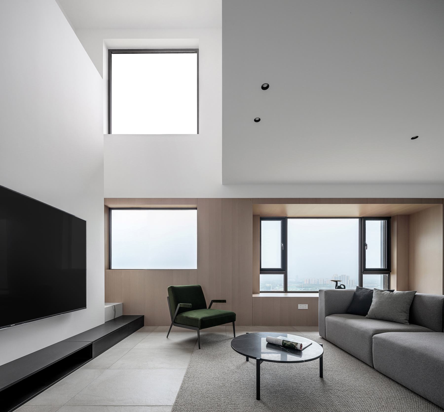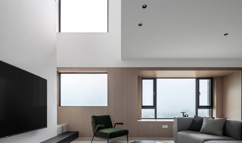 大面積的窗戶為客廳提供了充足的采光,沒有太多的修飾,利用利落的線條及簡單的色彩營造出空間的高級感,挑空區(qū)域清晰的空間構(gòu)造,使空間更加的大氣、通透、明亮富有質(zhì)感和藝術(shù)性。