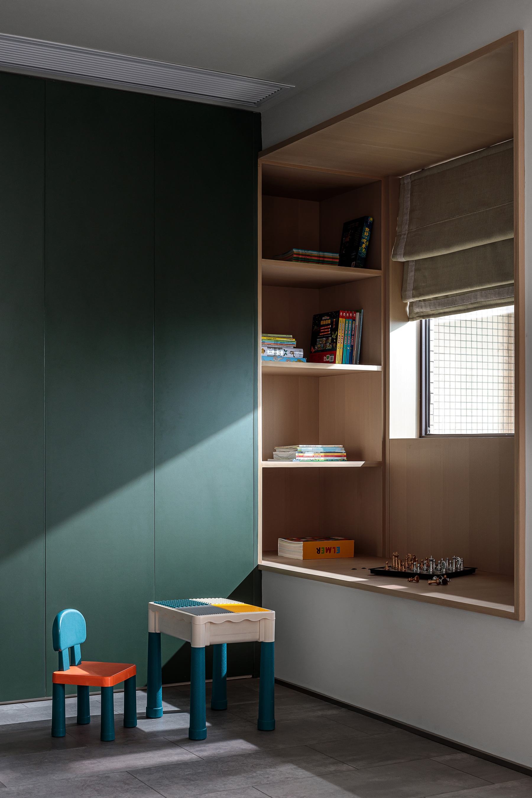 孩子房也沿用了客廳的白色+木紋設(shè)計,臥室空間設(shè)計師并未將孩子房做的過于童趣,純凈的白色個人一種簡潔、通透的感覺,搭配上寬敞的落地窗,讓自然光和風在空間中自由流動、穿梭。
