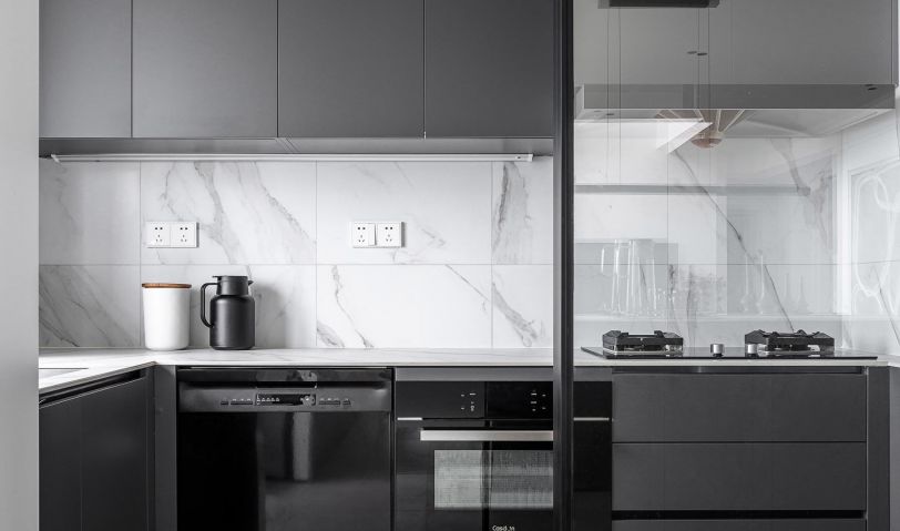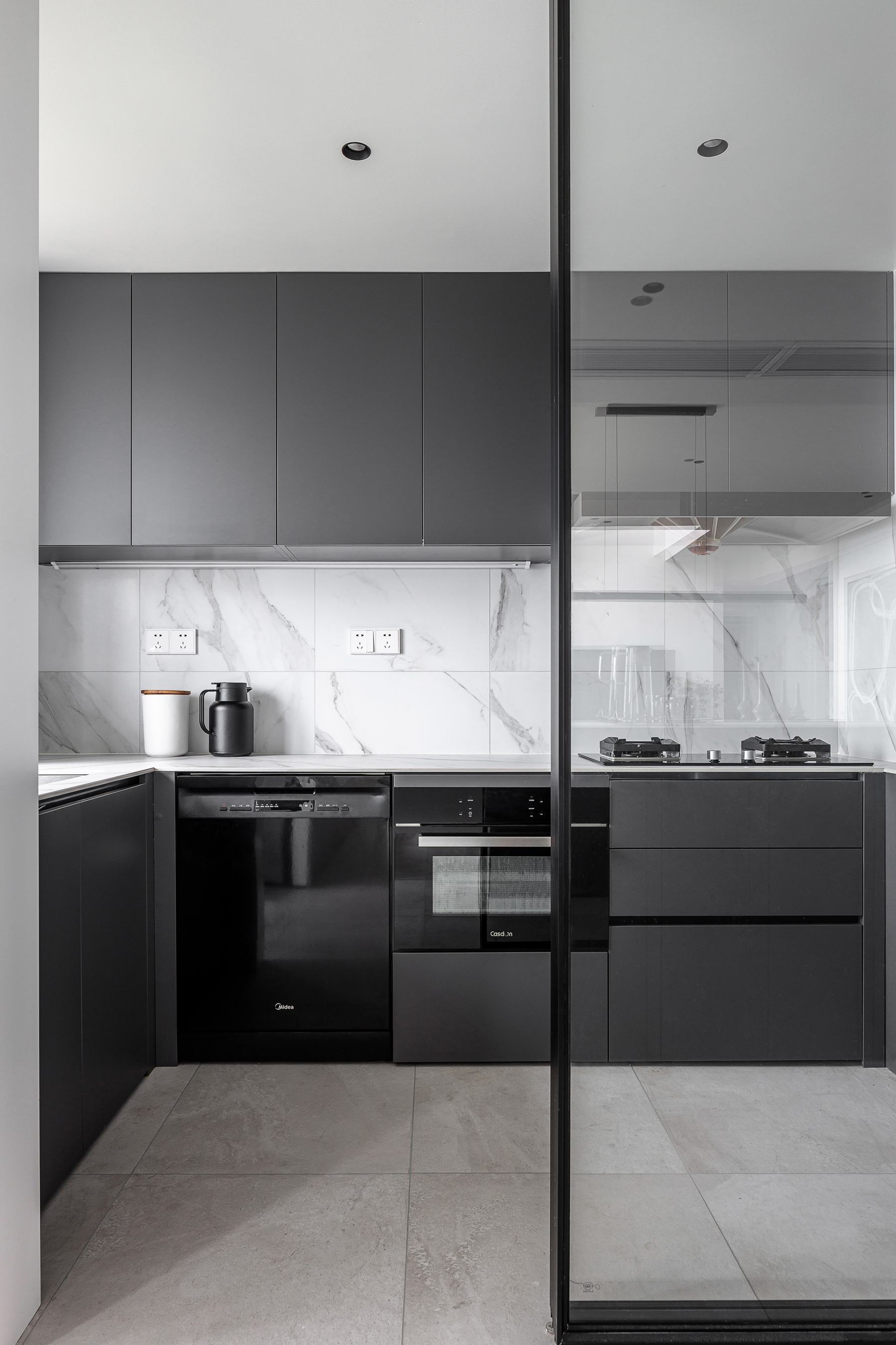“U”字型的平面布局,極大的提升了廚房的儲物功能;將電器隱藏在柜體里,讓使用空間得到充分的釋放和利用。