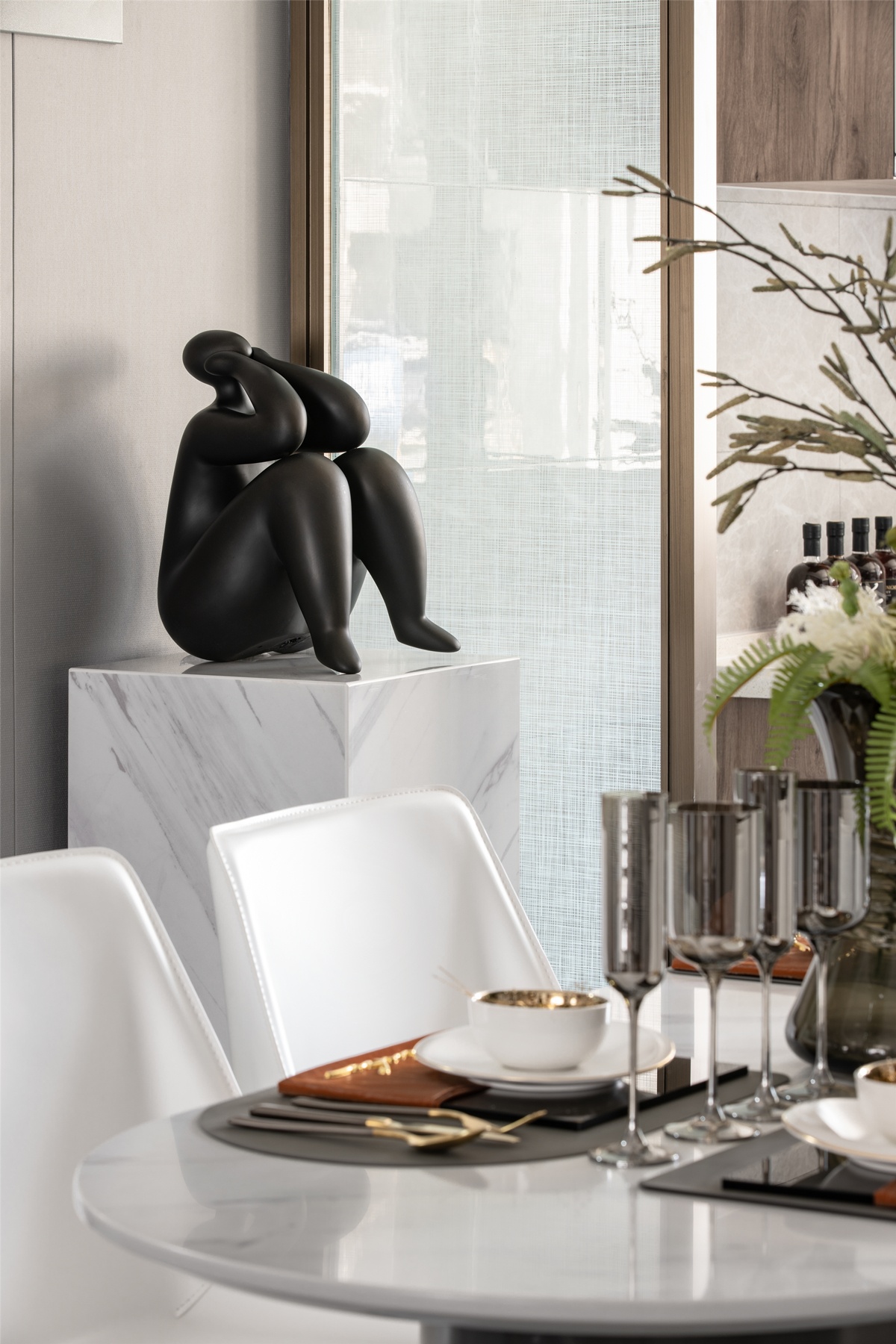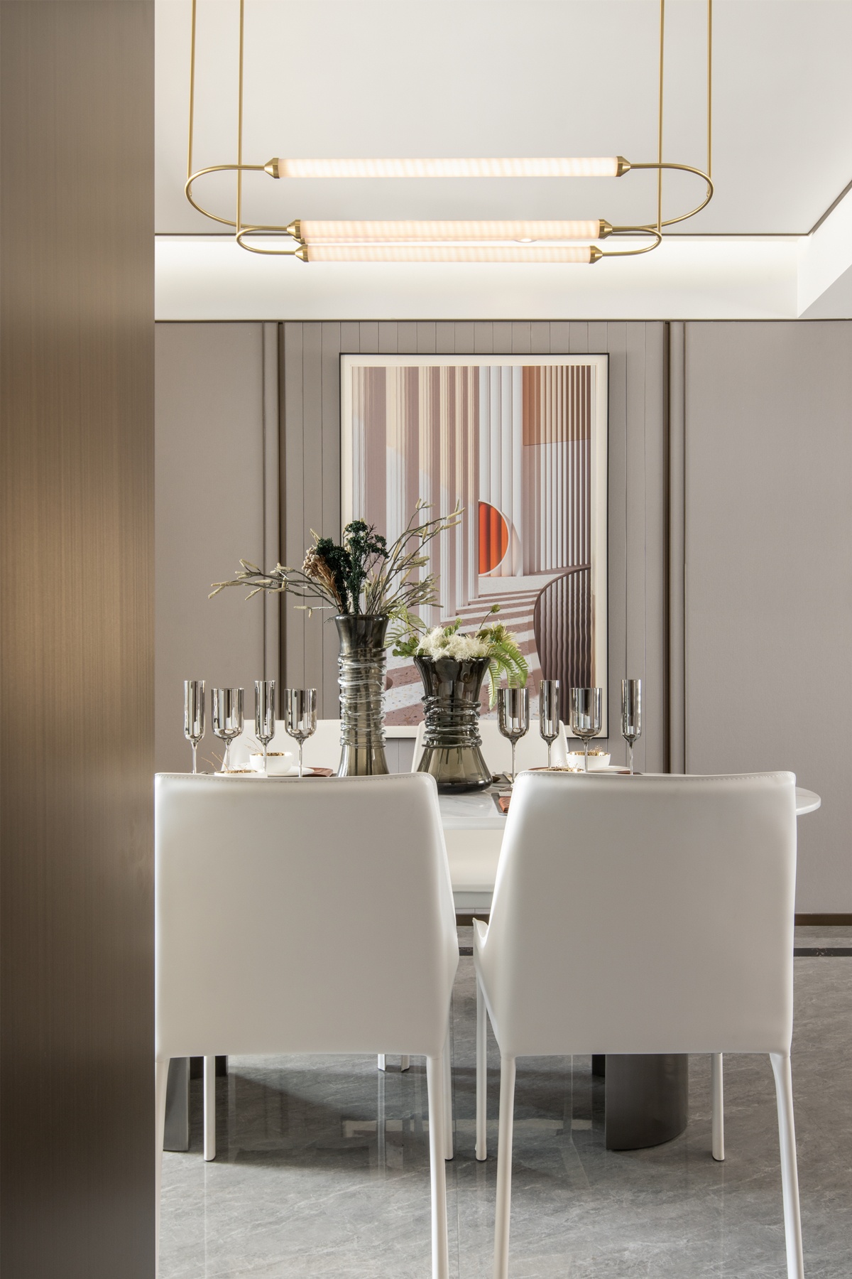 藝術(shù)來(lái)源于生活,又高于生活。正如餐廳的高級(jí)感,精致的高腳杯安靜地整齊而列,與之遙相呼應(yīng)的簡(jiǎn)約式吊燈,在一餐一食中盡數(shù)展現(xiàn)生活的藝術(shù)。