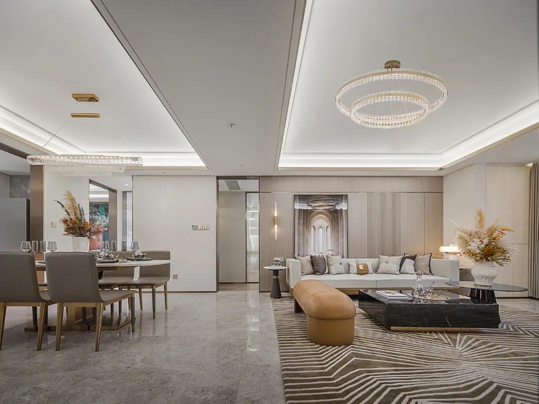 以現(xiàn)代都市生活為審美考量,設(shè)計(jì)將客餐廳連通一體,構(gòu)建現(xiàn)代家庭生活的開放式格局。金屬與皮質(zhì)的碰撞,將低調(diào)奢華的格調(diào)滲透至空間各處,在彰顯卓越工藝的同時(shí),予人精致優(yōu)雅的就餐氛圍。