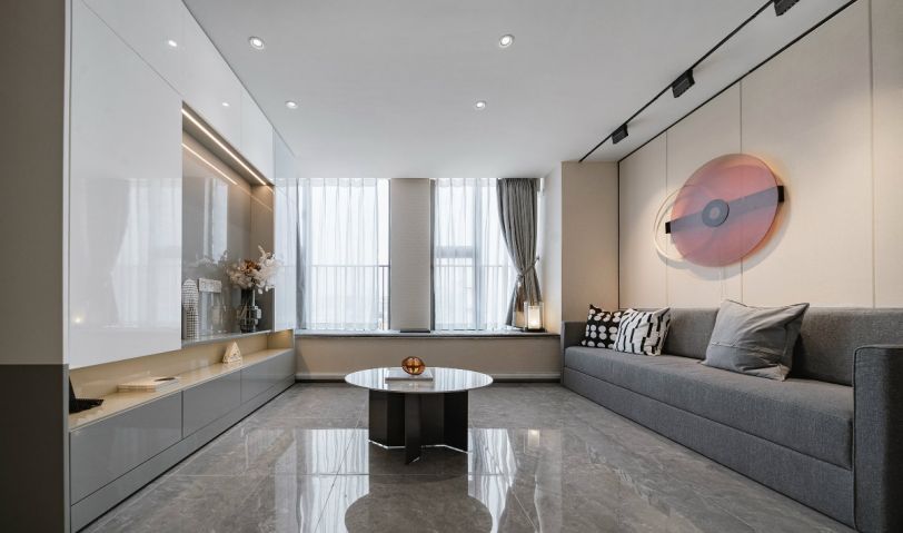 客廳沒(méi)有繁雜的裝飾,使用純白色的背景墻,木皮的溫潤(rùn)與空間互相呼應(yīng),通過(guò)平面整潔的方式與整體木搭配,令空間層次清晰,并使視覺(jué)感受更加寬敞。
