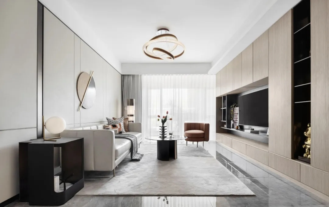 家是港灣,也是理想空間。通過細(xì)致的金屬線條紋理,淺色木以及皮革,配合精致的細(xì)節(jié)收口,使整體視覺更富開闊感。