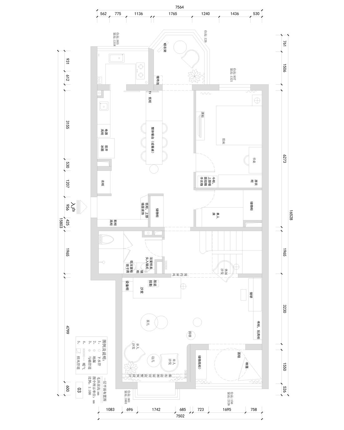 客廳打破常規(guī),前后背景墻的模式,去背景化處理手法,木格柵實木條作為隔斷,延長沙發(fā)區(qū)域的背靠空間長度,沒有用墻面形式來加長。保留最大視覺空間感