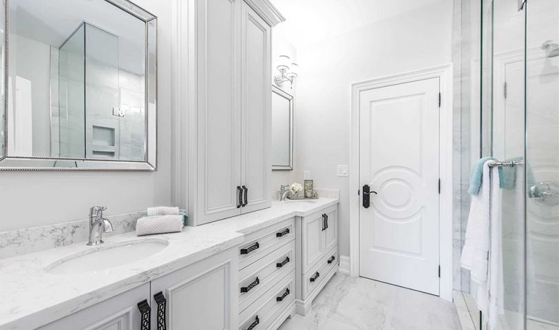 衛(wèi)生間具有很強(qiáng)的功能屬性,如何將歐式風(fēng)格的復(fù)古和華麗帶到這一空間是一個難題。設(shè)計(jì)師使用了黑白配色的歐式櫥柜,在滿足衛(wèi)生間的儲物功能之外,也為衛(wèi)生間增加了些許的歐式元素。
