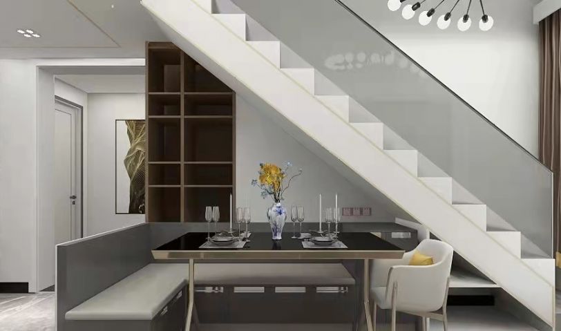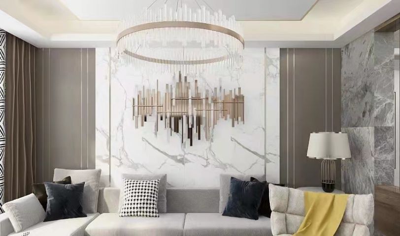 客廳經(jīng)過精心布置。與電視背景相對的一面特意設(shè)計了儲物柜,儲物柜采用乳白色,乳白色為主的客廳顯得沉穩(wěn);地面及部分墻面運(yùn)用了天然大理石做飾面,顯示豪氣尊貴,以及精致的沙發(fā)、輕奢的茶幾、個性化的臺燈,足以把現(xiàn)代簡奢發(fā)揮的淋淋盡致。
