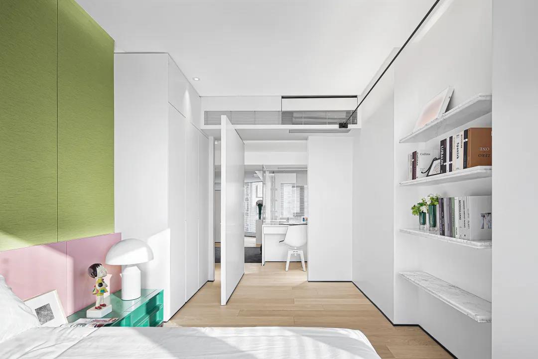 女孩房的背景墻采用清新的牛油果綠,以及具有少女心的淡粉色,兩者相結(jié)合,清新之中帶有一絲甜美,正是花季少女天真浪漫的顏色。