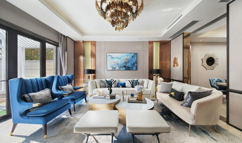 客廳以白色與香檳色為基礎(chǔ)色調(diào),讓客廳風(fēng)格顯得干凈明快,靈動(dòng)的金屬光澤巧妙地塑造了客廳的空間感,讓客廳的視覺(jué)空間得到了極好的延伸和拓展。明亮的主色調(diào)搭配鮮艷藍(lán)色的點(diǎn)綴,讓客廳在充足的光線下煥發(fā)出充沛的朝氣與活力,令人感到溫暖而舒暢。