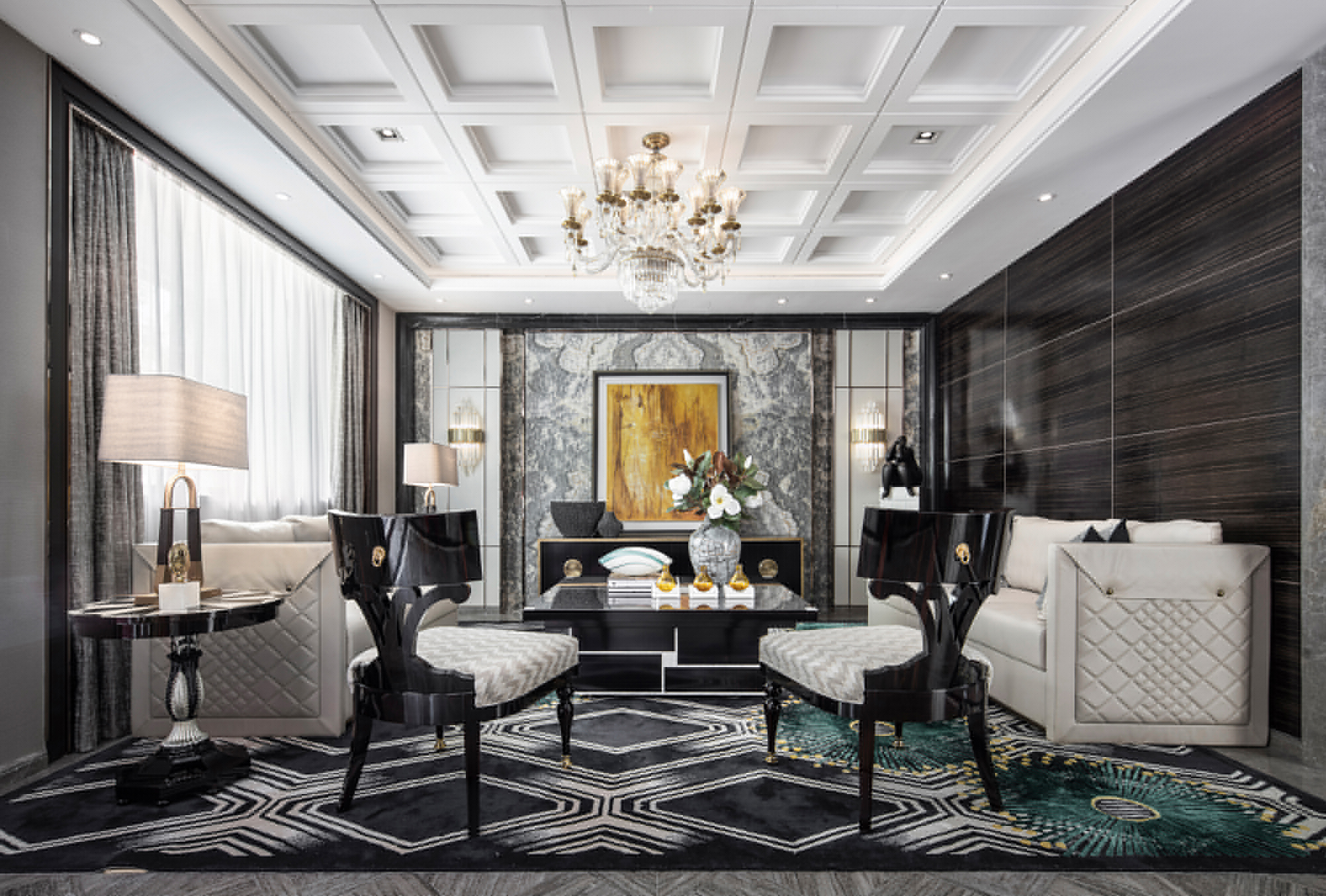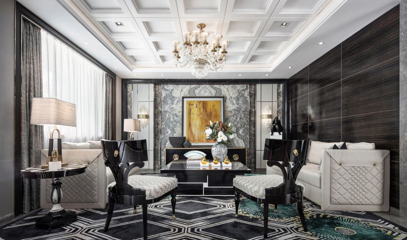 本案人物定位為喜歡古典格調(diào)也鐘愛當代藝術(shù)、深具文化涵養(yǎng)的高端客層,設(shè)計風格將新古典的高貴與當代品味的質(zhì)感生活相互交融,空間以考究的軟裝細節(jié)、精粹奢華的材質(zhì)搭配和富有激情的藝術(shù)主題,詮釋兼具古典和摩登的當代居住范例,傳遞典雅的藝術(shù)人文美感。