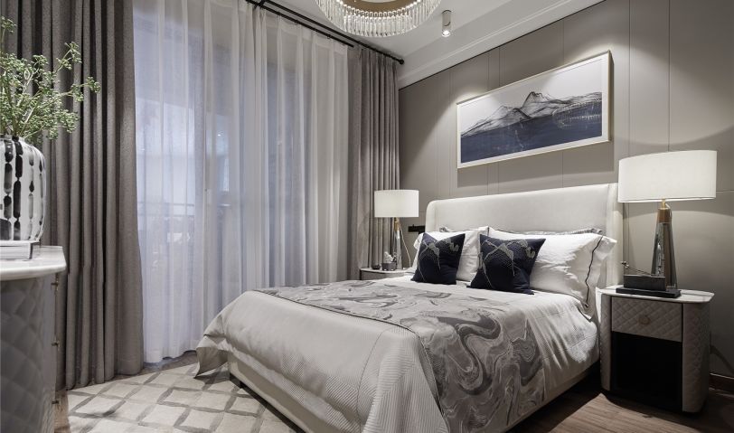 主臥布品及家具不俗的現(xiàn)代工藝提升了空間的整體格調(diào),無論是床品或飾品,色彩上的選擇把安逸、無拘無束的心態(tài)呈現(xiàn)無遺.