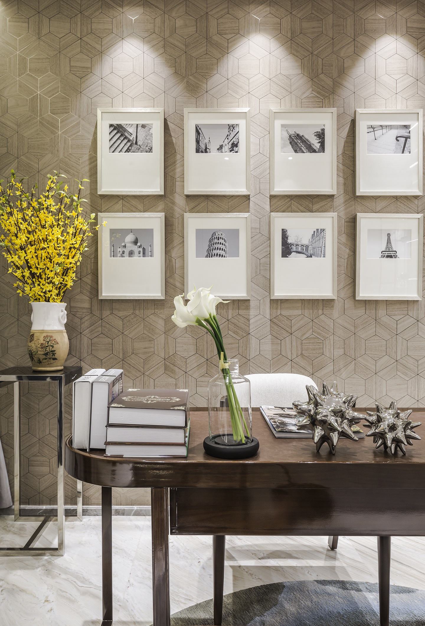 金色框線勾勒出這個小空間的輪廓,搭配小巧而匠心獨(dú)運(yùn)的家具,自有一種獨(dú)到的精致與靈氣。