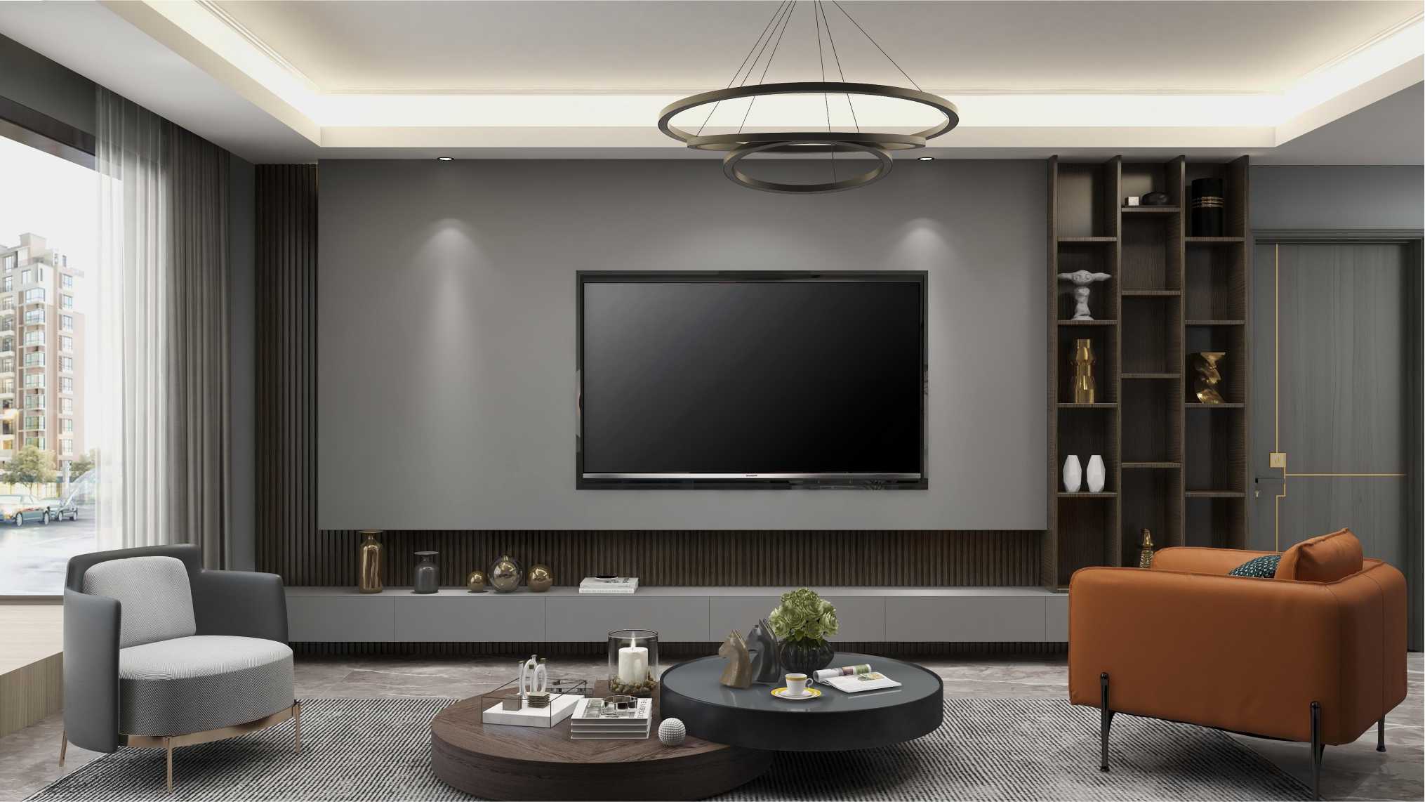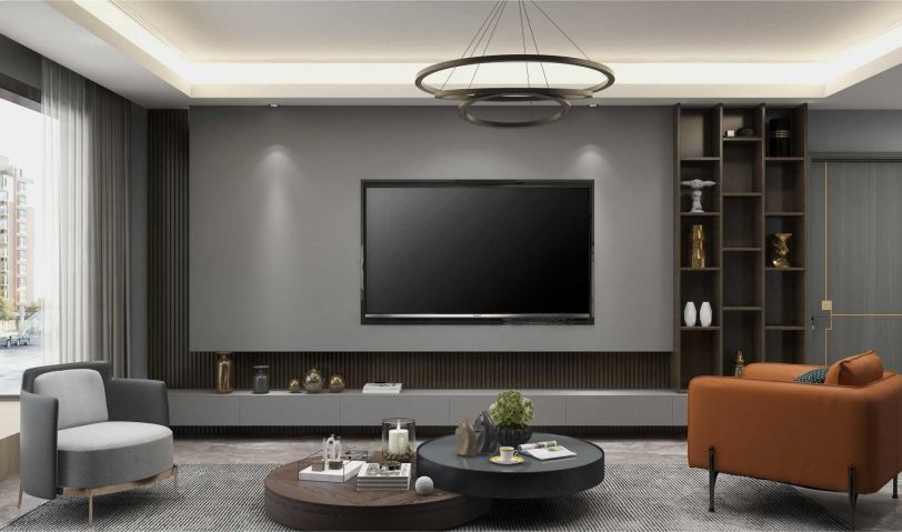 客廳電視背景墻簡約大氣,做了收納開放同時(shí)的儲(chǔ)物和展示