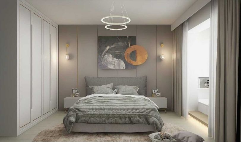 主臥室以暖色系為主,給人一種溫暖舒適的感覺