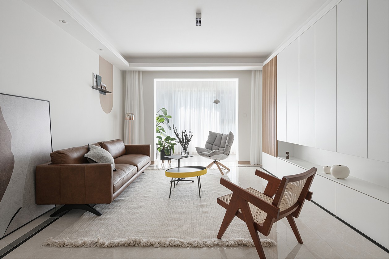 客廳與陽(yáng)臺(tái)聯(lián)動(dòng)互通,視覺(jué)的縱深感隨之而來(lái),空間因此擁有了良好的采光和通透性。