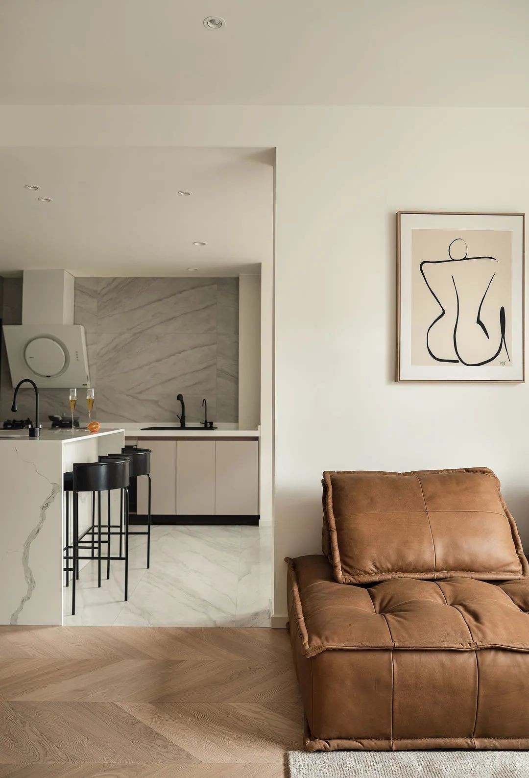 客廳比較小,一副裝飾畫,簡約經(jīng)典不過時的落地燈,跳色設(shè)計感的沙發(fā)對于這個空間來說就夠了,無需過多裝飾。