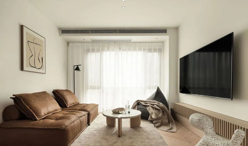 地板,木飾面,裝飾畫,沙發(fā),搭毯,茶幾等等都選用低飽和的色彩。