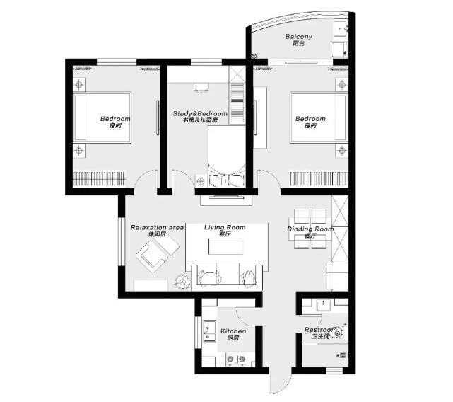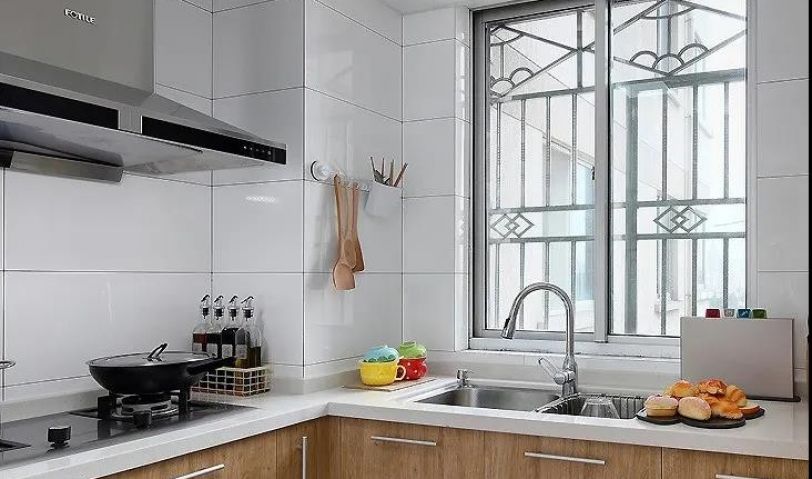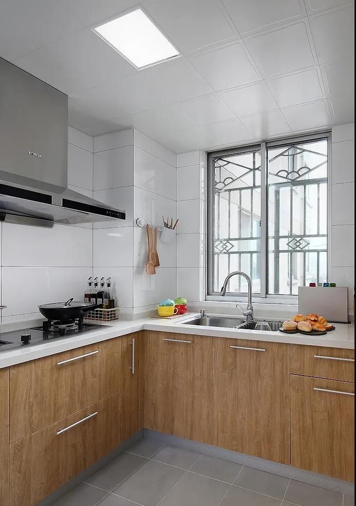 廚房也加上原木色,與客廳廚房統(tǒng)一。
