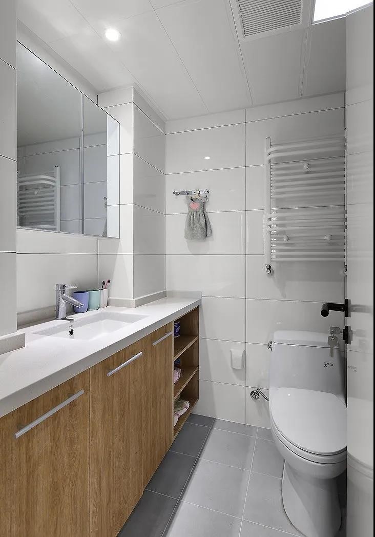 原木色的設(shè)計(jì)貫穿全家的每個角落,衛(wèi)生間也不例外,帶給人輕松愉悅的氛圍。