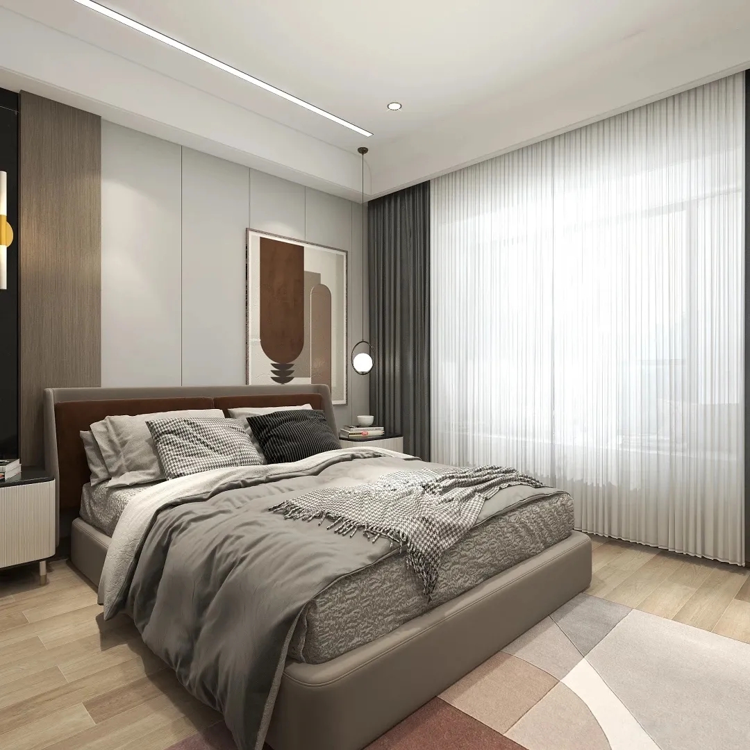 整體定為現(xiàn)代簡約風(fēng),主導(dǎo)是是形式簡單、高度功能化與理性化的統(tǒng)一。顏色上,以干凈為主,原木+白色,使層次感更為鮮明。整個空間的打造,去繁就簡,靜心生活。