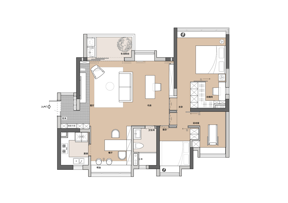 將原先封閉的書(shū)房與客廳打通,做成了開(kāi)放式,讓空間更加寬敞、通透。
