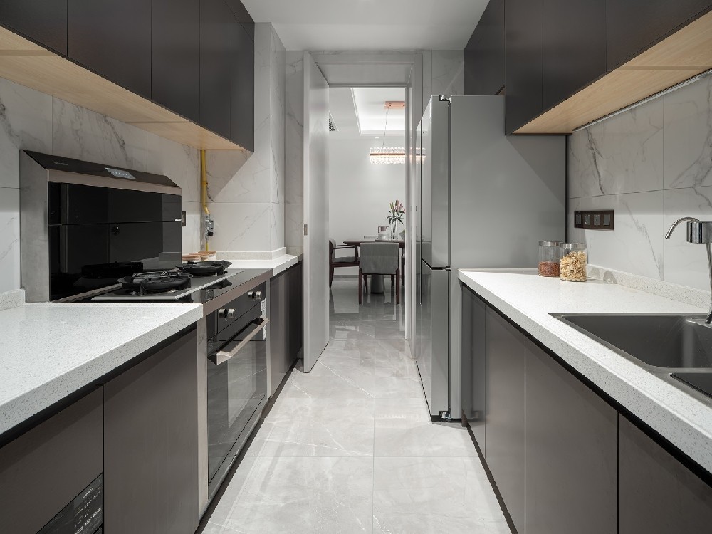 廚房采用了等字形的櫥柜,保證了居家實(shí)用性,預(yù)留了很多的操作臺面。在忙碌過后,回到愛家,為自己烹飪一餐美食,靜靜的享受這個過程,成就感滿滿。