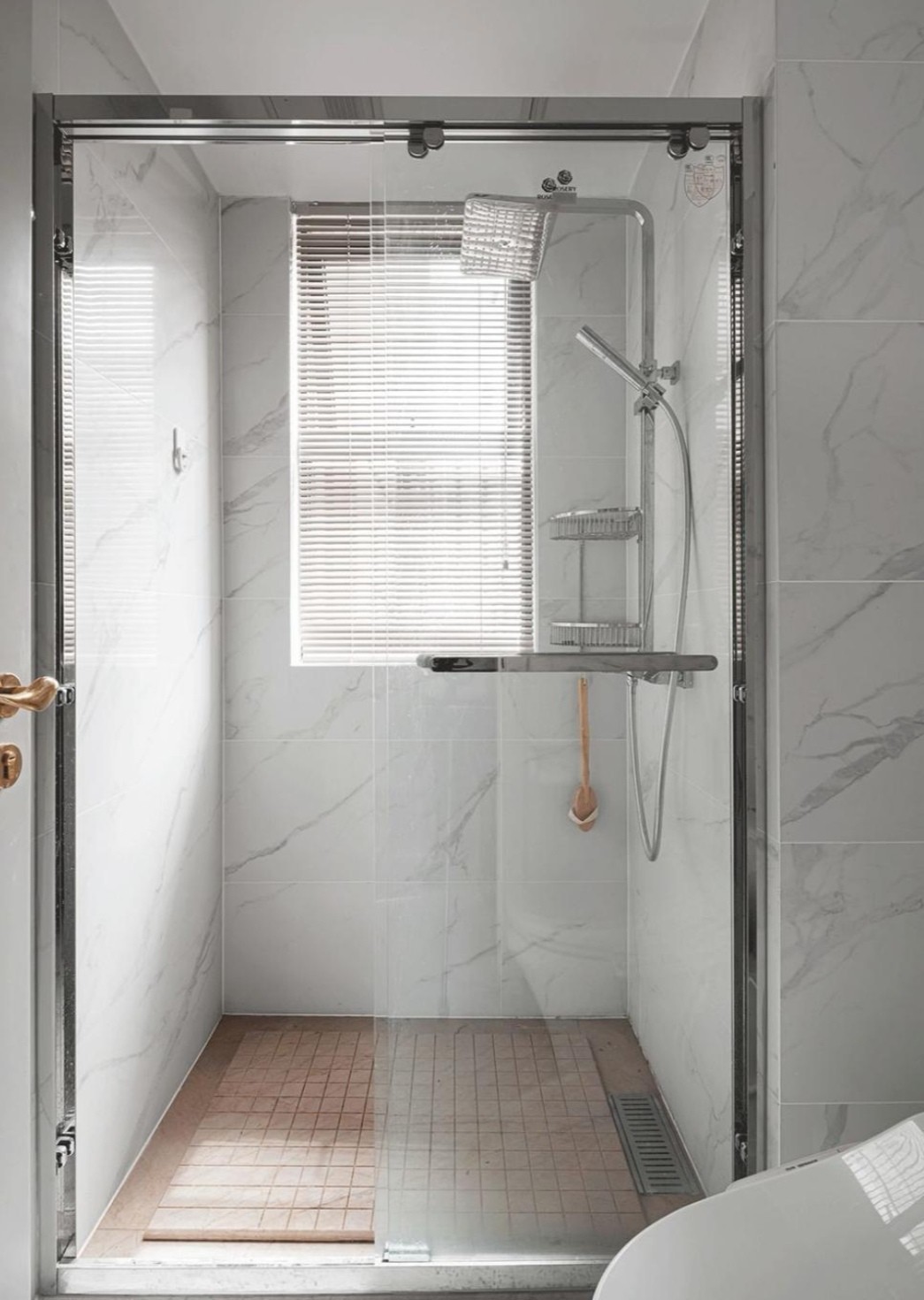 大膽地將追求自由的心表露無遺:墻面用大理石紋墻磚搭配一面粉色的條紋墻磚
