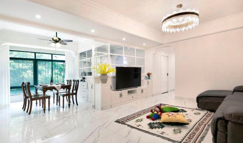 客廳采用暖色調(diào)墻漆,客廳墻面留白沒做過多裝飾