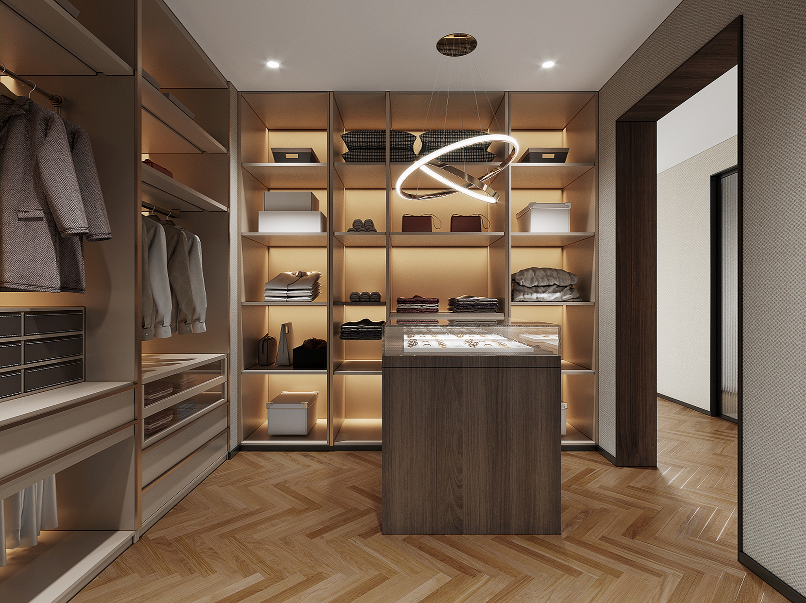 整體配合以為黑,白,木色,為主色調,增加了紅色做點綴。