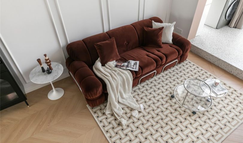石膏線造型搭配酒紅色沙發(fā),這是女主人的最愛
