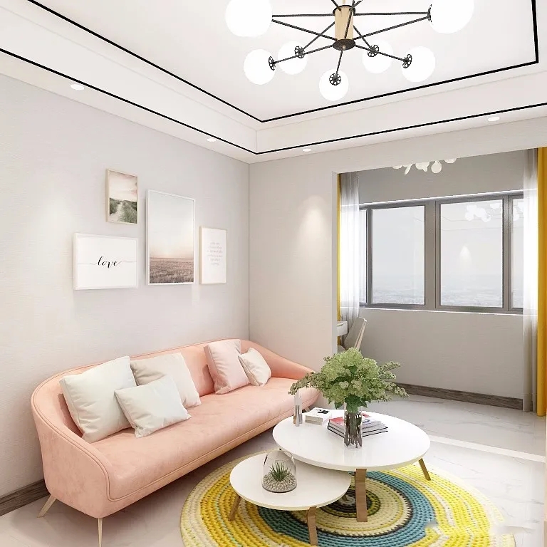 第二個就是家具樣式和顏色,主要體現(xiàn)簡單簡約木紋和白色搭配,沙發(fā)布藝經(jīng)典款為主,