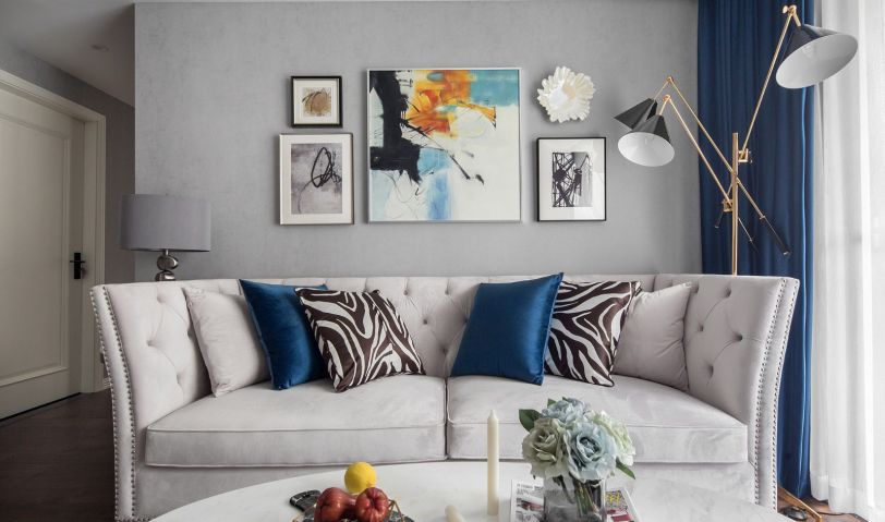 灰色的墻面加深色的木地板,墻屋吊頂簡(jiǎn)明大方,也為軟裝部分留足空間。搭配復(fù)古式沙發(fā),顯得更加有品質(zhì)。