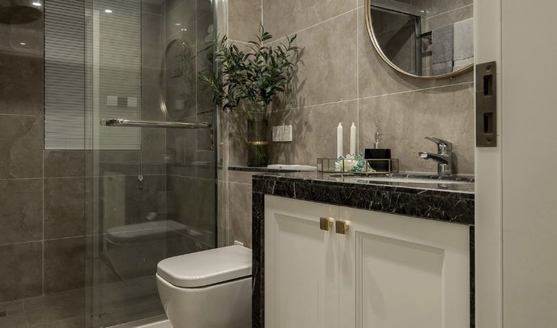 浴室的全瓷磚加上浴室柜的石材,一種沉穩(wěn)有力量的感覺,整體色調(diào)也更加亮堂。家的感覺就是舒適。
