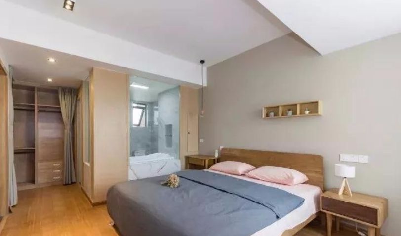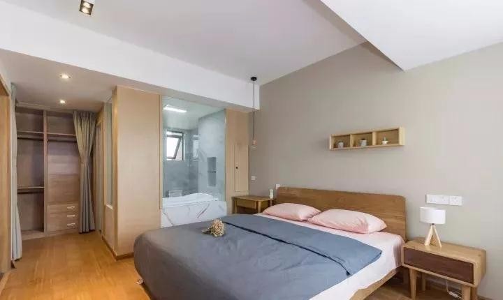 臥地面通鋪竹質(zhì)地板,性價比超高,木作柜體作飄窗,兼具收納與休閑功能。