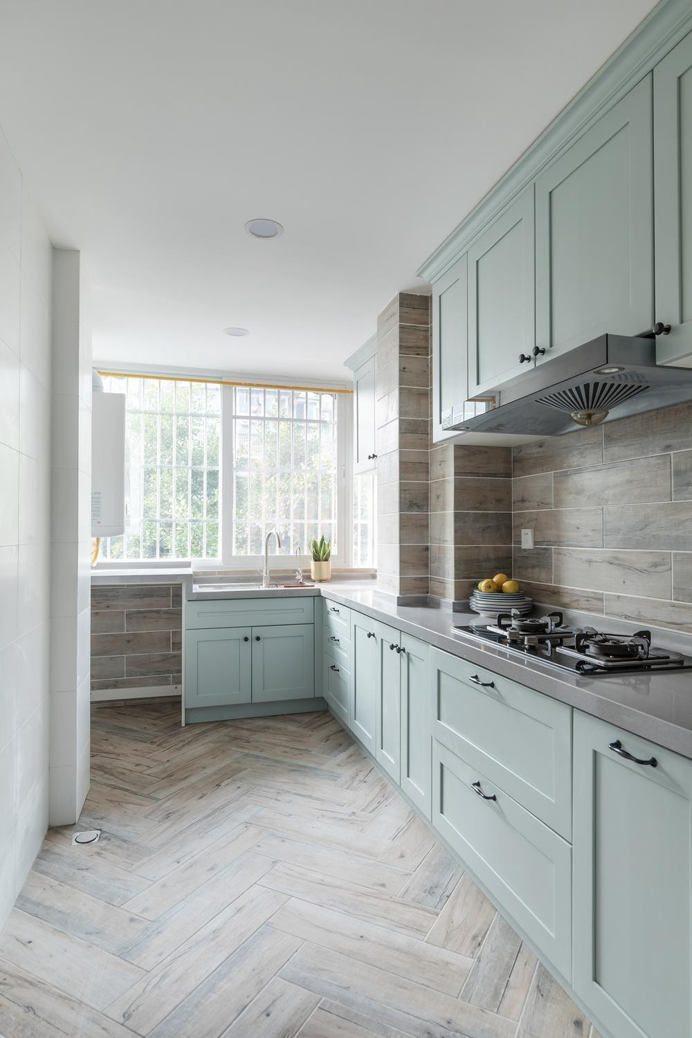 廚房選用淺藍(lán)色的顏色 襯托整個(gè)空間的亮度和諧