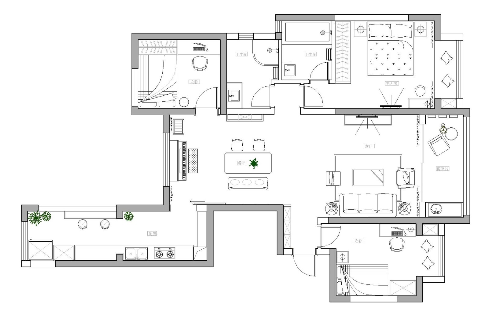 主臥軟裝延續(xù)了本案雅致北歐的視覺定調(diào),床品選用了千鳥格的床頭靠背,灰度的床單質(zhì)感與舒適度呼應(yīng)著空間主人的氣質(zhì)與品位