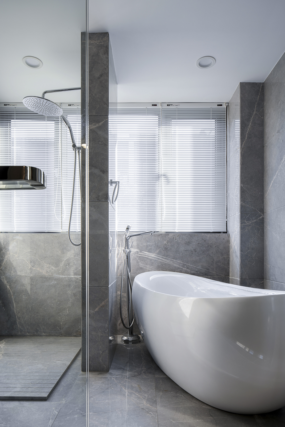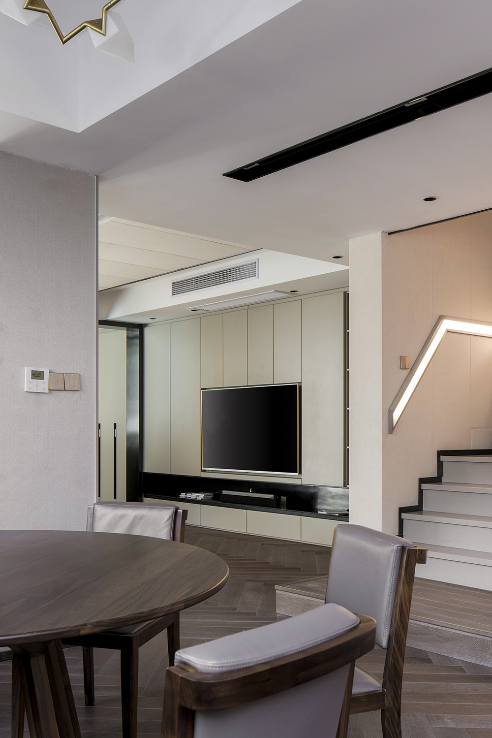 大理石與木材相互碰撞,玻璃元素穿插其中,質(zhì)感天成的品質(zhì)現(xiàn)代臺式空間體現(xiàn)的是業(yè)主時尚前衛(wèi)的品味