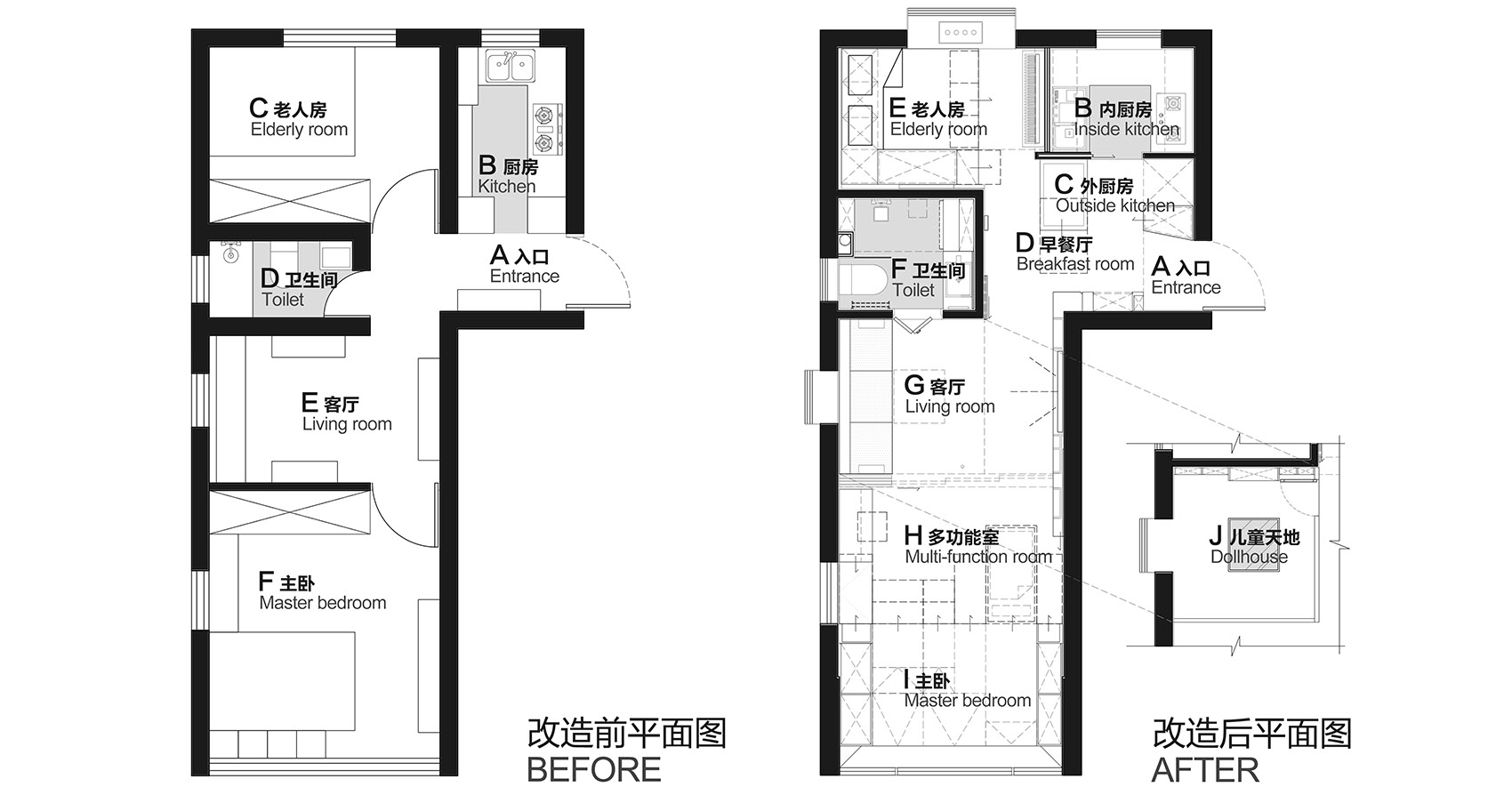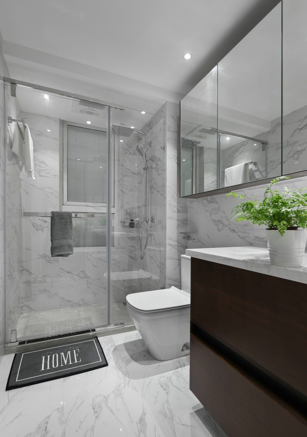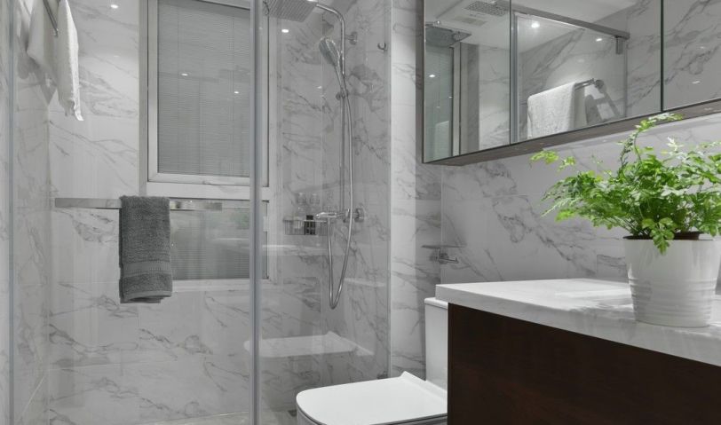同款花紋的墻地磚加上防水石膏板吊頂,顛覆了傳統(tǒng)的暗衛(wèi)