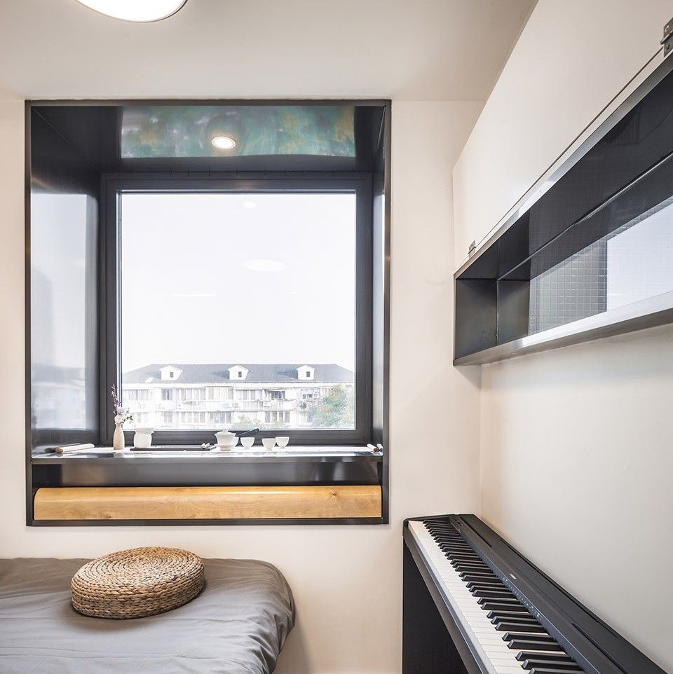 明亮的臥室,伴隨飄窗上的茶桌