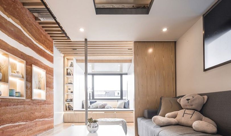 寬闊明亮的原木色客廳