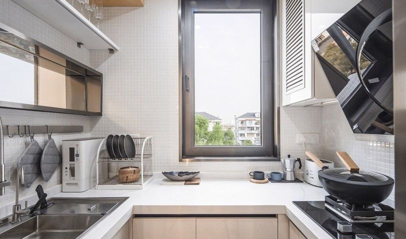 寬闊明亮的原木色廚房,視野開闊。巧妙的嵌入式設(shè)計(jì)為此節(jié)約了不少空間