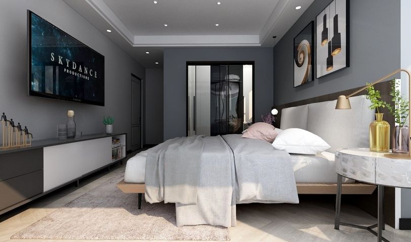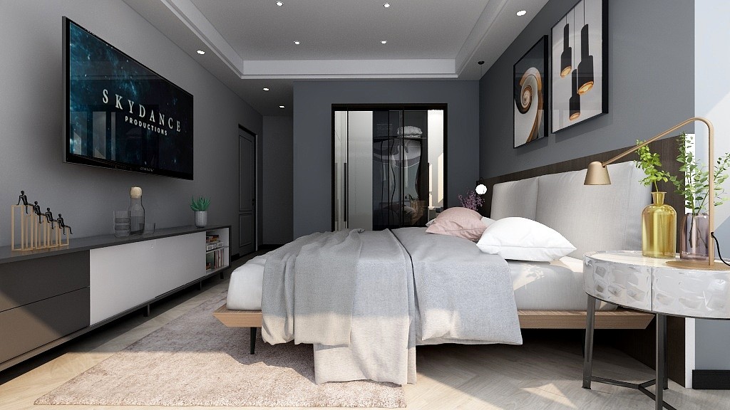 家具以簡(jiǎn)單造型為主,主調(diào)采用黑白灰色調(diào)