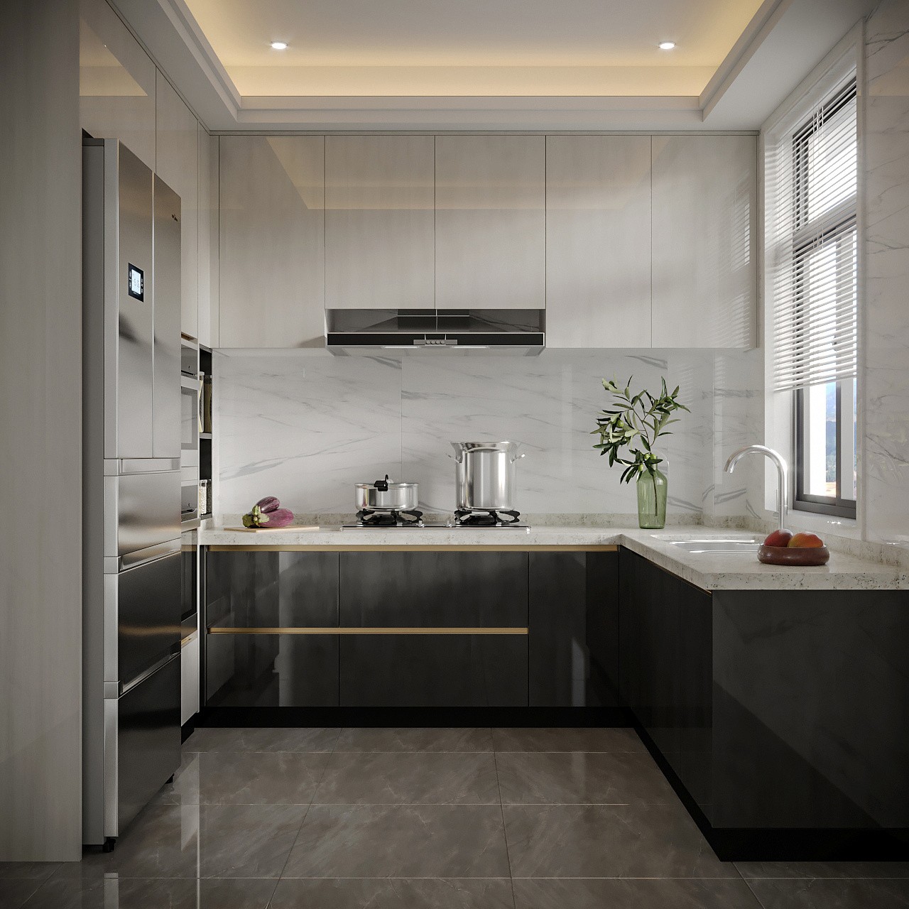 開(kāi)放式廚房將元、色彩、照明簡(jiǎn)化到最少,提高質(zhì)感要求