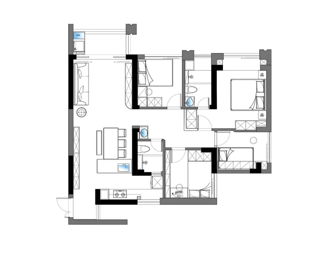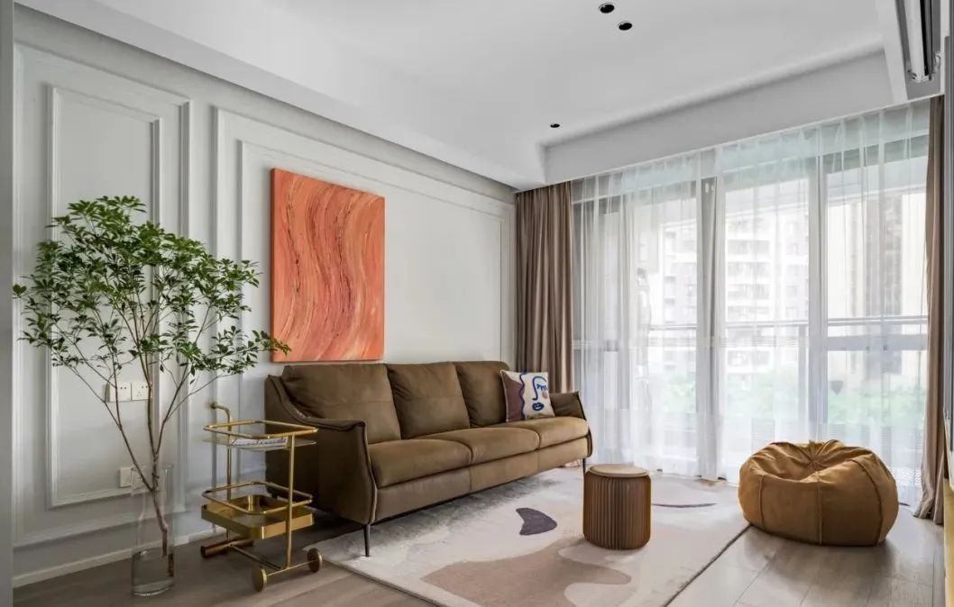 這是一套面積為102平米的三居室,整體設(shè)計(jì)以簡約實(shí)用為主,還加入了一些輕奢元素,提升空間質(zhì)感。色彩搭配上,以優(yōu)雅的灰、白色為主色,并大膽運(yùn)用了高級靜謐的藍(lán)色,還有橙色、棕色等的點(diǎn)綴,打造出一個(gè)精致溫馨又充滿小資情調(diào)的家居空間。