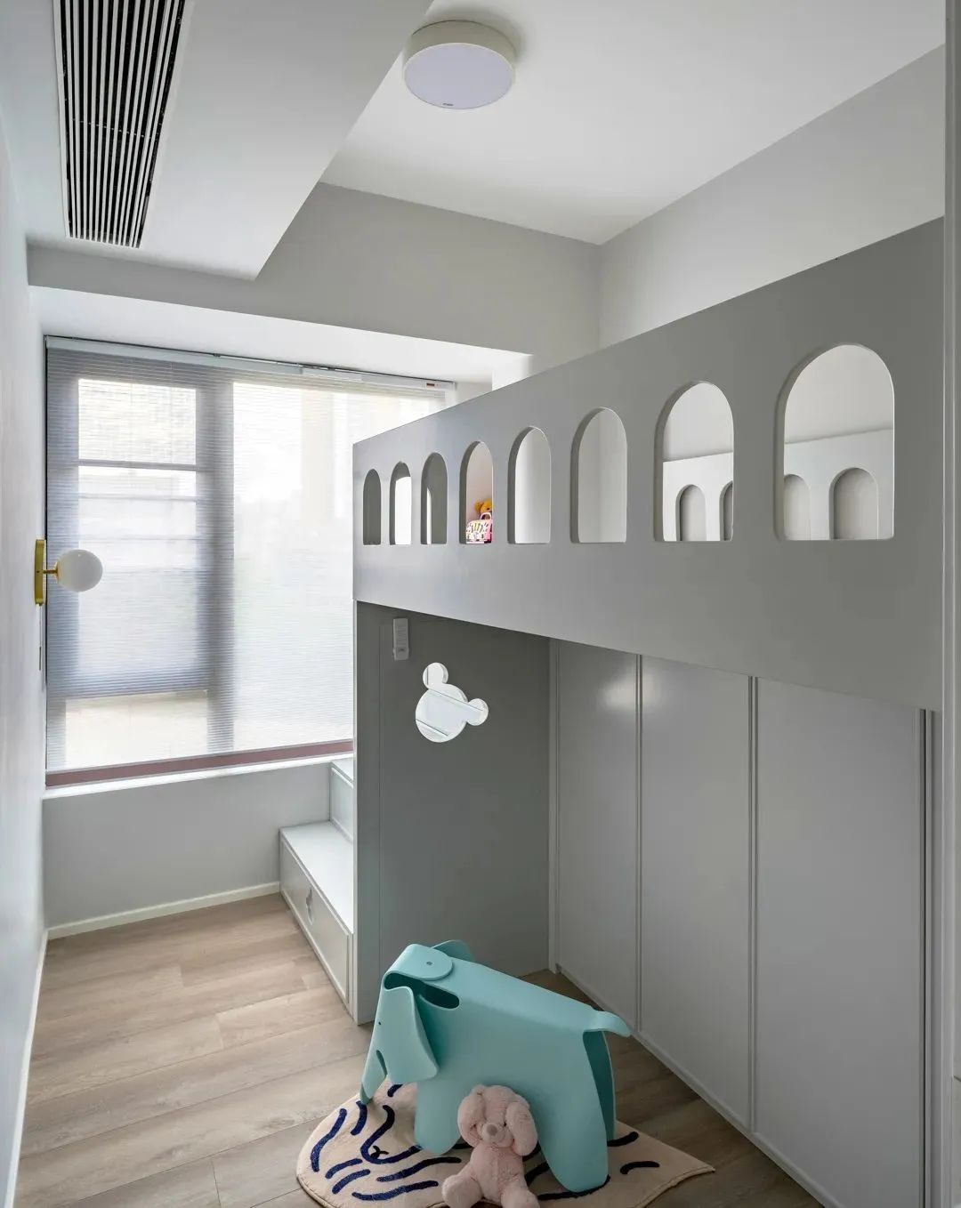 女孩房清新柔暖,收納空間的造型設(shè)計(jì),簡單色彩的搭配,使空間充滿了活力,激發(fā) 孩童的探索欲望