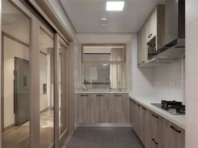 廚房安裝的玻璃推拉門,增加這個空間的采光,讓這個小空間看起來不會有閉塞感。