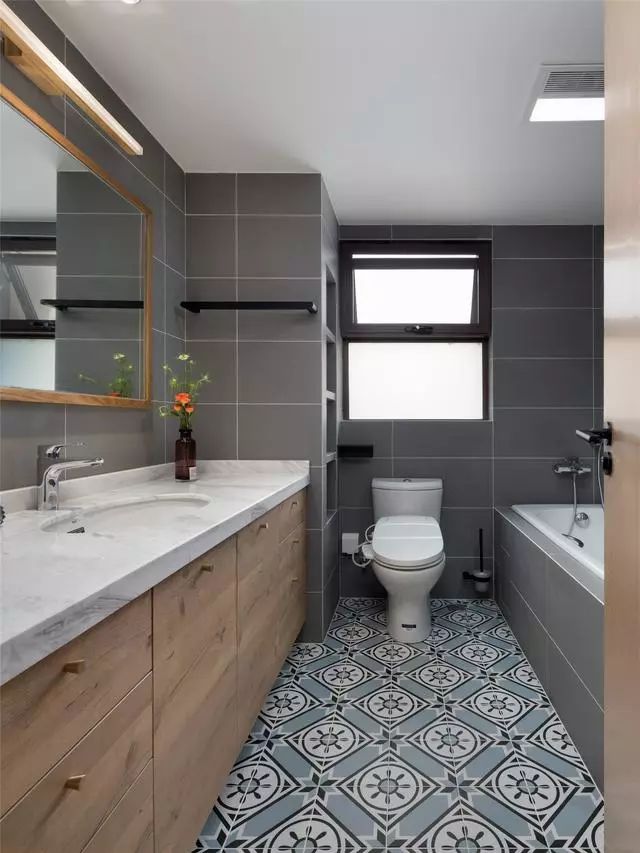 由于屋主想在次衛(wèi)放一個浴缸,雖然原本的空間也不小,不過也算不上多寬敞,于是設計師通過優(yōu)化空間布局,改成H型布局,放下了浴缸,將空間的利用率提升到極致。