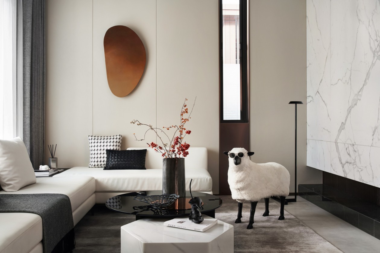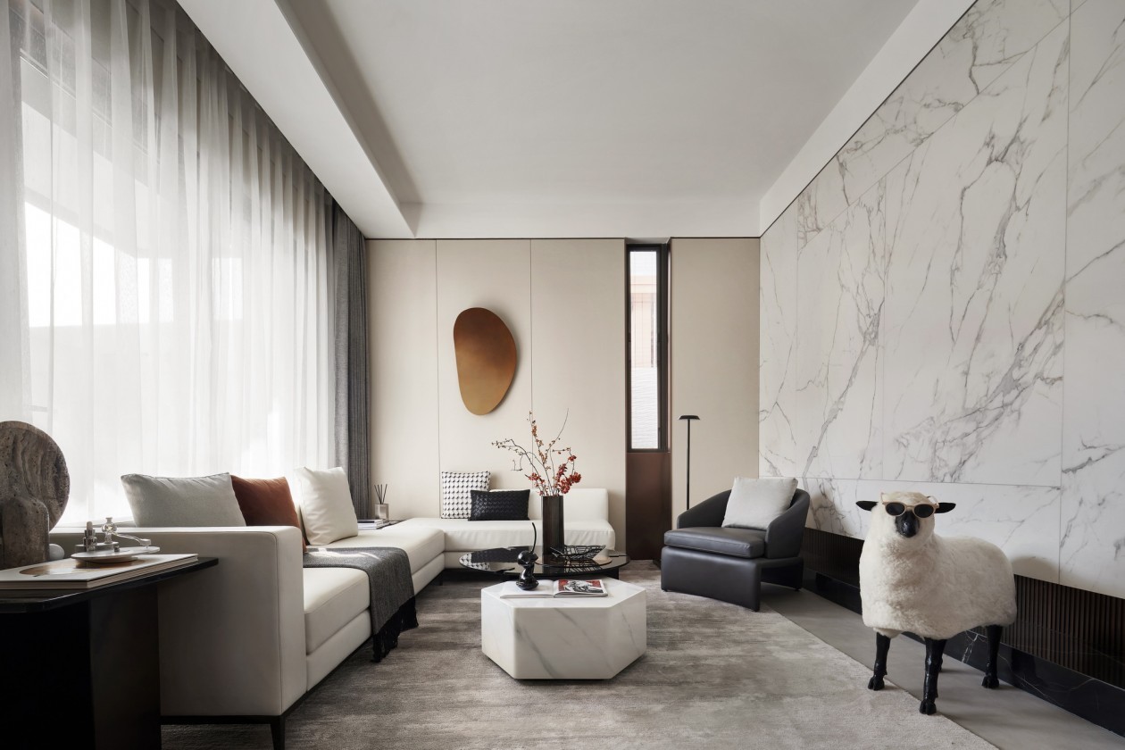 家的魅力來自于承載歲月的洗禮。解構主義的重新表述,大理石、棉麻、皮革面料沙發(fā)及金屬壓邊,不同材質的疊搭,每一次的碰撞與融合都是新的革命,讓空間頓生別樣律動之美。