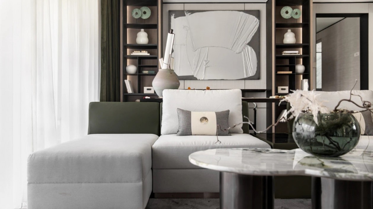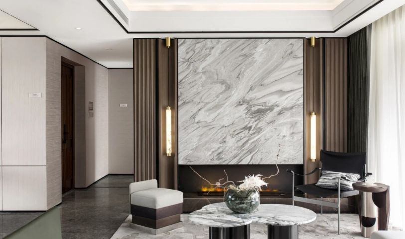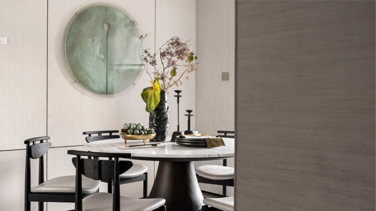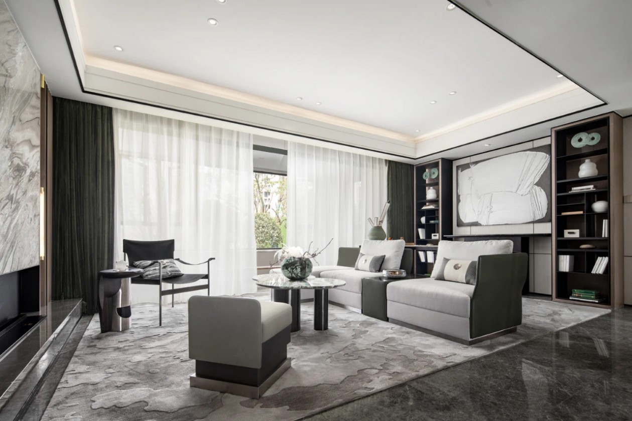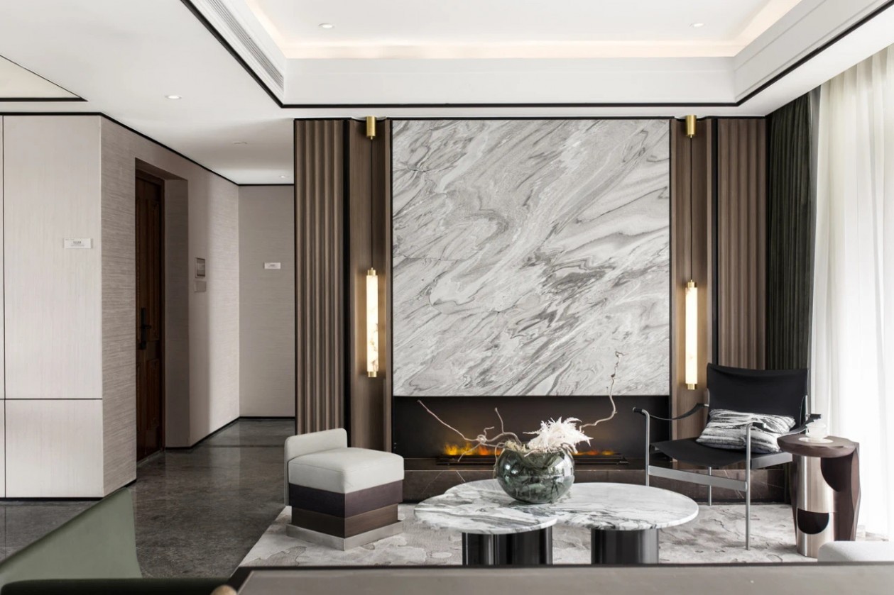 茶幾位置采用跨越文化界限的藝術(shù)家作品,反映了不斷變化的景觀,精湛的工藝兼富美感和功能感,內(nèi)化了空間現(xiàn)代中式的靈感。