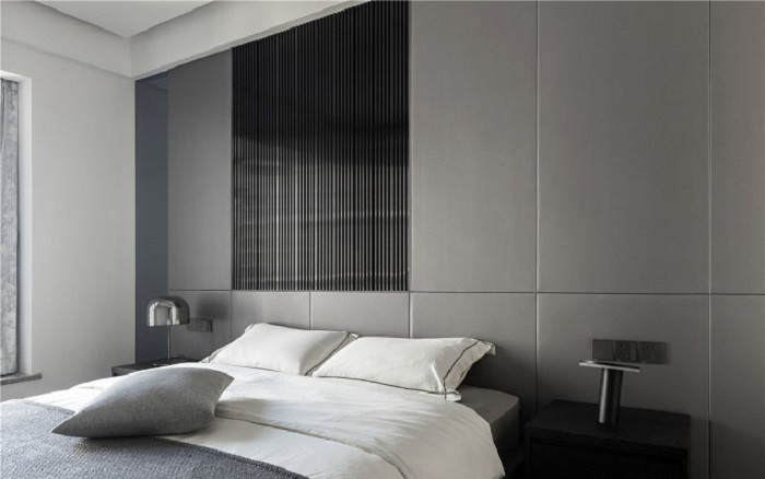主臥的空間是干凈溫暖的, “暖”并不是在色彩上的體現(xiàn), 而是希望通過材質(zhì)的運用和生活方式的結(jié)合, 從觸覺的舒適來提升溫馨感。
